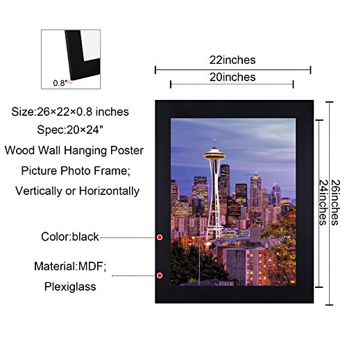 Adeco 20x24 Black Wood Decorative Wide Margin Picture Frame - Wall hanging Poster Frame - Made to Display 20x24 Photo or Poster