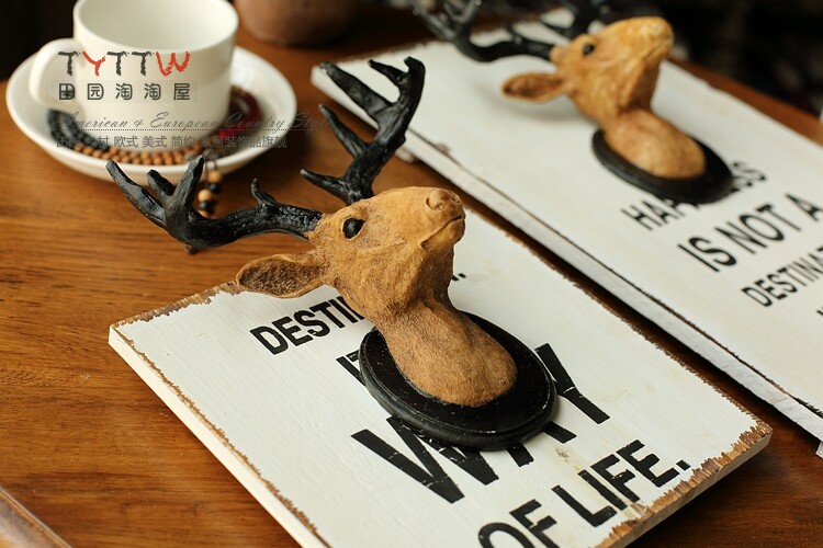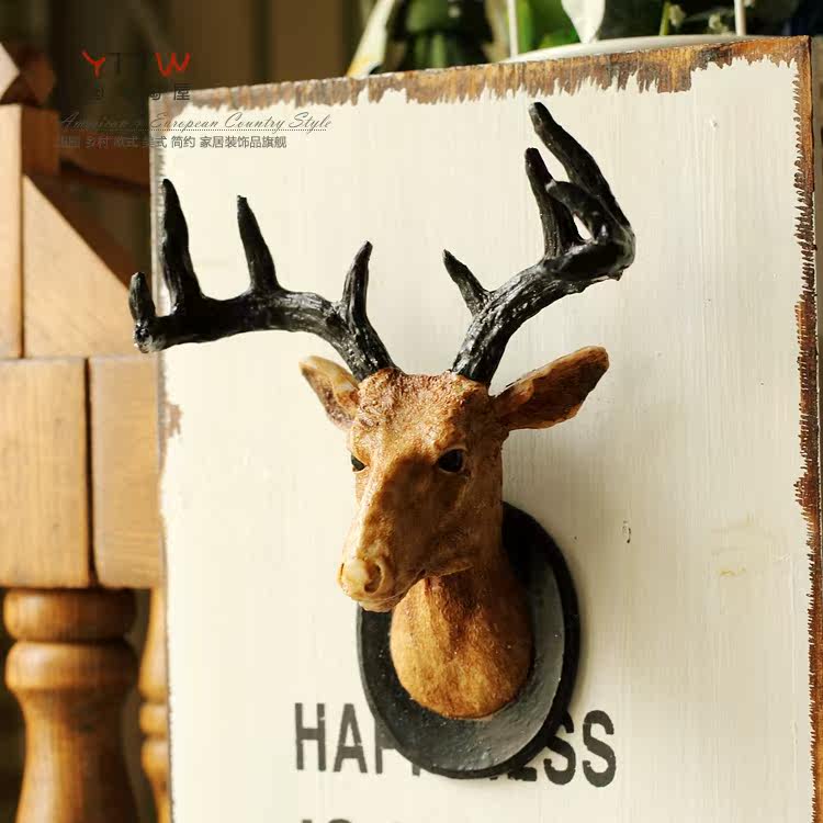 美式法式乡村复古做旧木质树脂鹿头时尚创意家居酒吧墙饰壁饰挂画?
