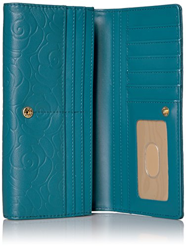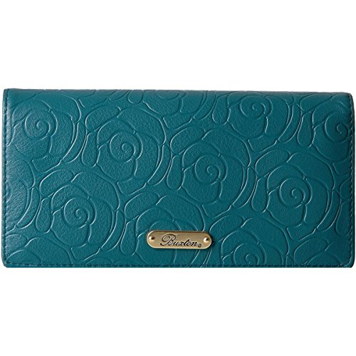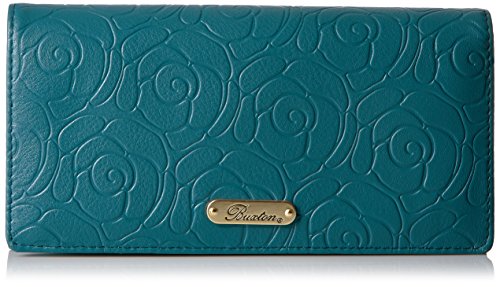 Studio : Buxton Publisher : Buxton Binding : Apparel Product Description Naturally milled rose embossed leather, custom dyed, with satin gold tone logo plaque/hardware rose garden expandable clutch features a full flap closure and outside coin purse, 2 i.D. Windows, multiple credit card slots, multiple slip pockets, 1 gusseted slip pocket, 2 i.D. Windows, multiple credit card slots, multiple slip pockets and 1 gusseted slip pocket. 0