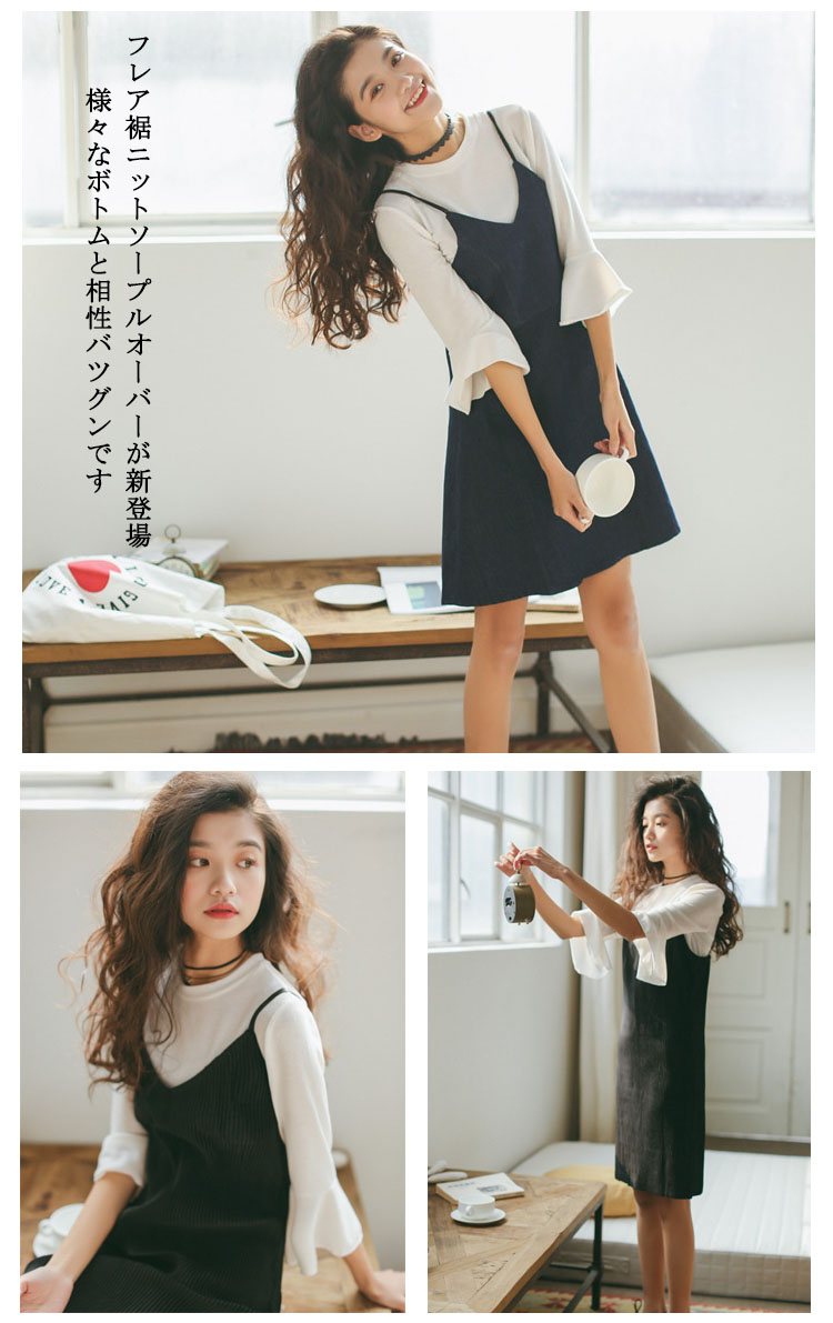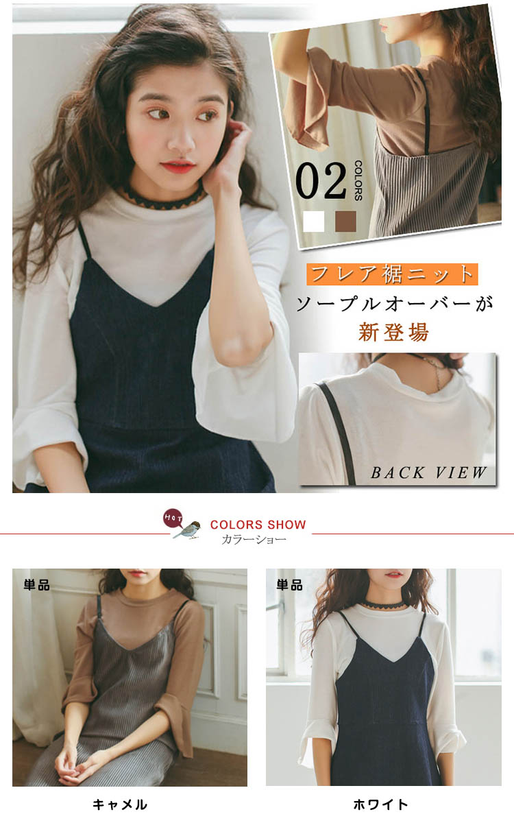 | フレア裾ニットソープルオーバーが新登場様々なボトムと相性バツグンです大人のフェミニンスタイルに最適デイリーウエアに重宝すること間違いなしです | |