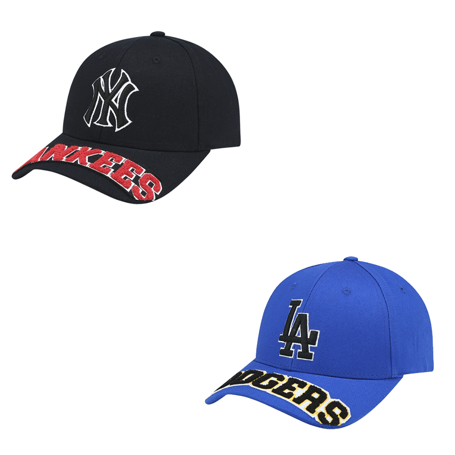 부클 상챙 커브 벨크로캡. 상챙의 로고를 부클 기법과 컬러 포인트를 준 스타일.