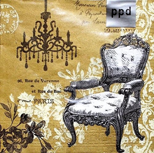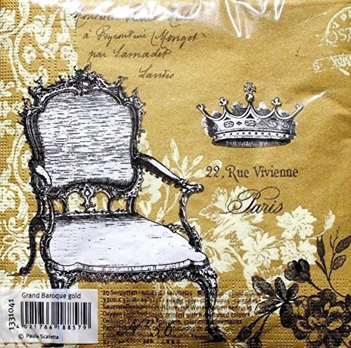Paperproducts Design 1331041 Grand Baroque Gold 20-Pack Paper Luncheon Napkins, 6.5 by 6.5-Inch