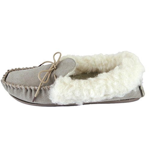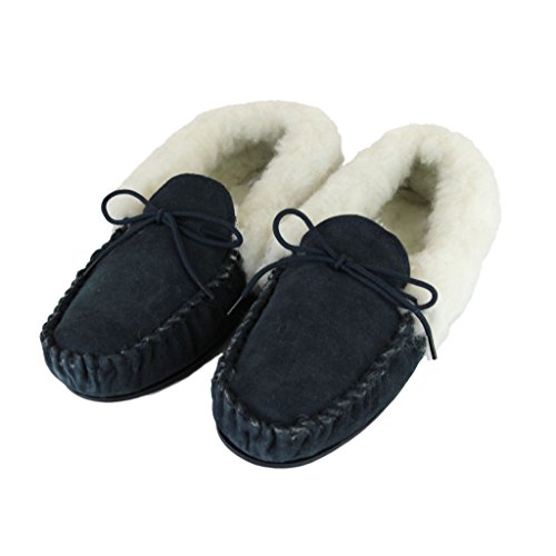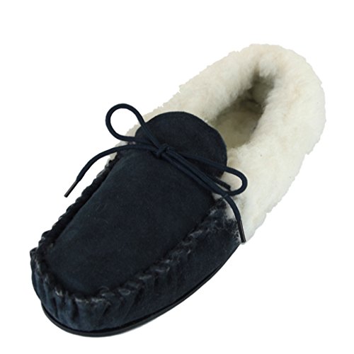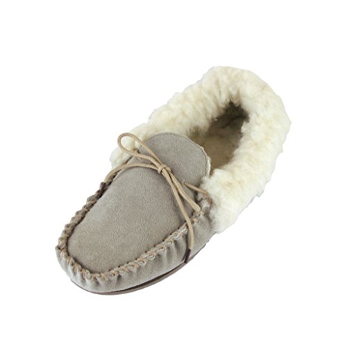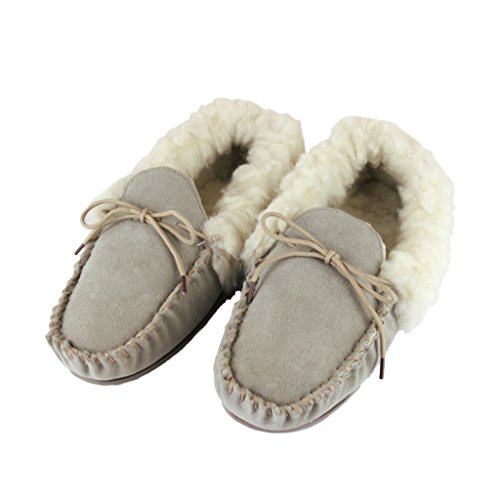 Product Description Genuine Ladies Suede Moccasins with warm lining made from Sheepskin Wool and Outer Wool Cuff. Hard TPR non-slip sole, perfect slippers for keeping your feet warm this season. 0