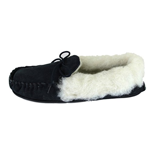 Deluxe Ladies Lambswool Moccasin Slippers with Hard Sole - Suede Upper