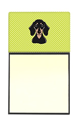 Caroline's Treasures Checkerboard Lime Green Smooth Black and Tan Dachshund Refillable Sticky Note Holder or Postit Note Dispenser, 3.25 by 5.5", Multicolor