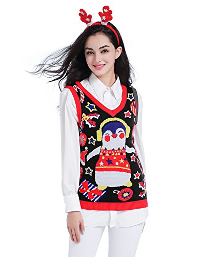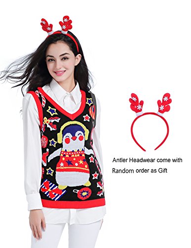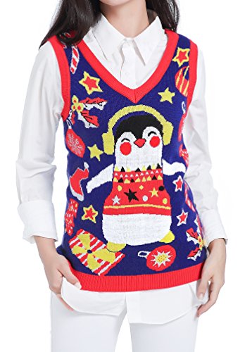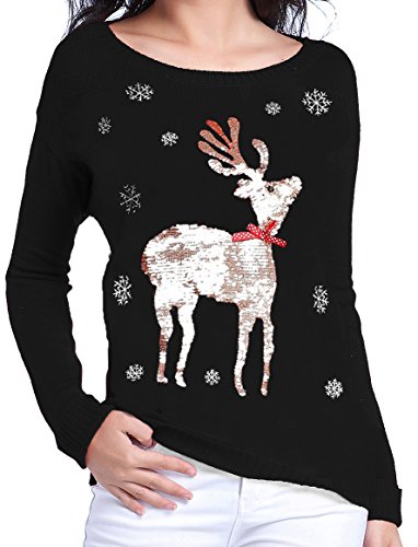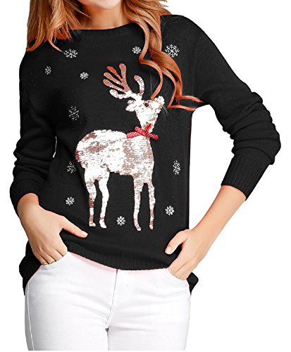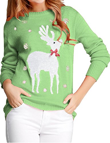 | V28 Women Girl Ugly Christmas Shining Reindeer Snowflake Pullover Sweater Jumper |