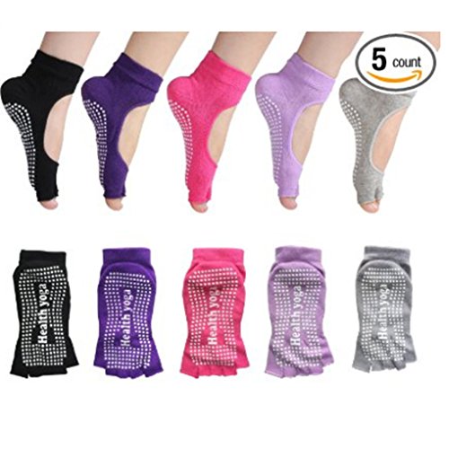 WENDYWU 5 Pack Yoga Socks Non Slip Skid Pilates Barre with Grips for Women