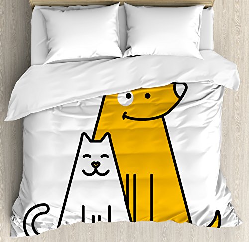 (Ambesonne)/Bedding Bath/Bedding/DIRECT FROM USA/Cartoon Duvet Cover Set by Ambesonne, Cats and Dogs Human Best Friends Forever Kids Nursery Roo...