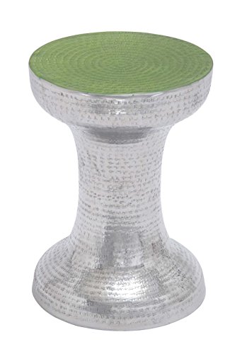Product Description17" Contemporary Hammered Aluminum and Iron Pedestal Accent Table with Painted Green Top, flat bottom base0