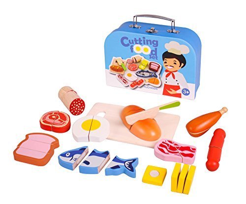 -. Title : Njoykids Velcro Cutting Food Pretend Play Wooden Toy Set with Handle Box