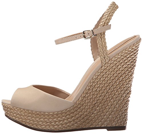 Ladies high wedge with ankle strap.