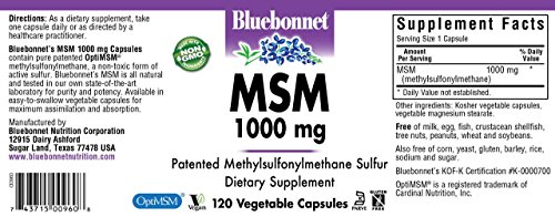Bluebonnet's MSM 1000 mg V Capsules provides pure patented methylsulfonylmethane (OptiMSM), a superior, distilled form of active Sulphur.Feature