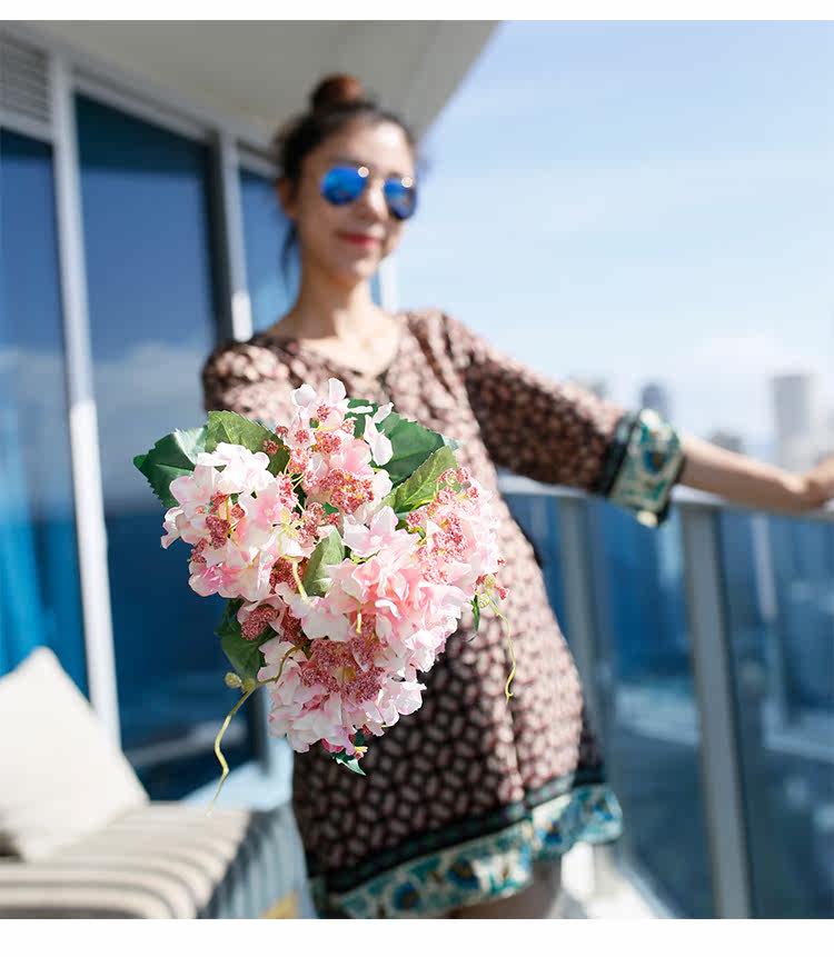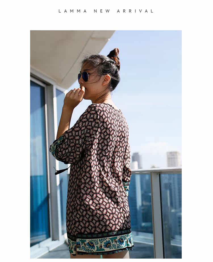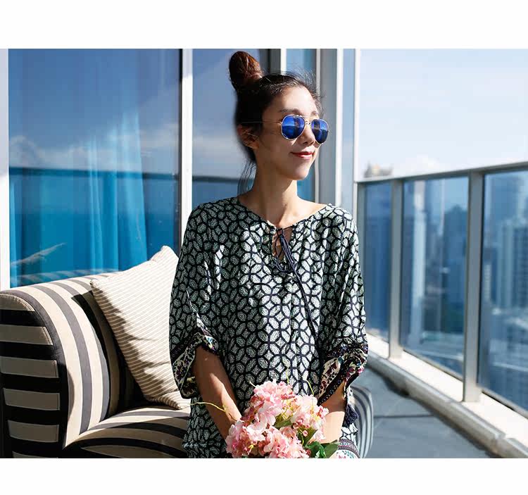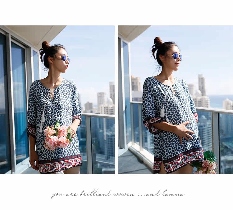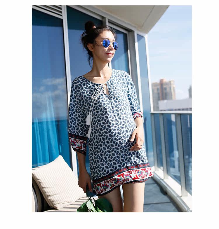 夏新款民族风V领刺绣孕妇连衣裙宽松中长七分袖棉麻孕妇上衣