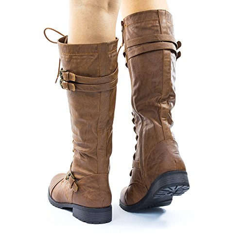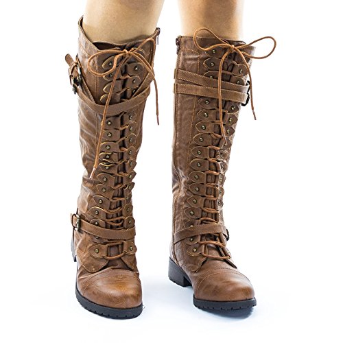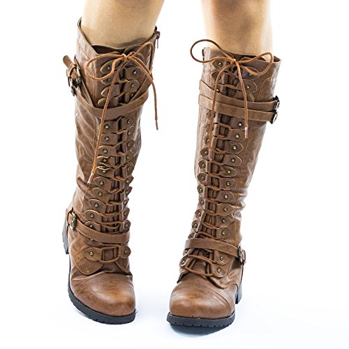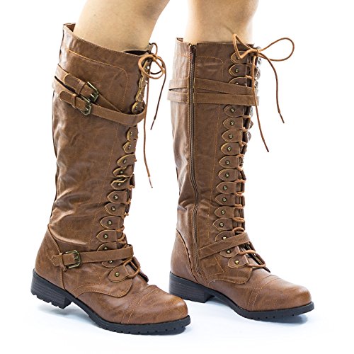 Binding : Apparel Product Description About This Shoes :These military and equestrian riding boots inspired boots features a full frontal lace up closure with buckle for the eyelet, double belt on the upper shaft and single belt on the lower shaft, chunky block heel, lug sole and a full side zipper. The material has a vintage fade. Brand - Wild Diva Colors Available: Black, Brown Occasion: Casual Shoe Type: Combat Boots Shoe Style: Combat Boots Inner Lining: synthetic Heel Height In Inches - 1.25 Heel Style - Block Toe Style - round-toe Platform Height In Inches - Shaft Height In Inches - 14 Circumference Opening - 16 Strap Type - 0 Sole - 0 All Man Made Material unless otherwise stated. Computer/Phone/Table monitors might show color differently because of its quality or calibration, we suggest you look at the photo in at least 3 monitors if you need exact color match of your shoes. 0