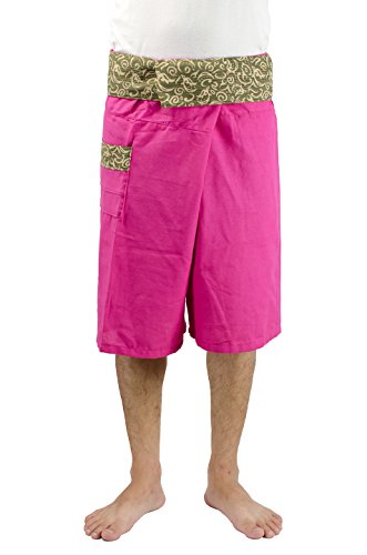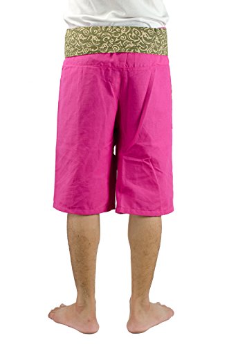 Artiwa 2 Tones Cotton Mens Womens Fisherman Casual Yoga Shorts with Pockets Pink
