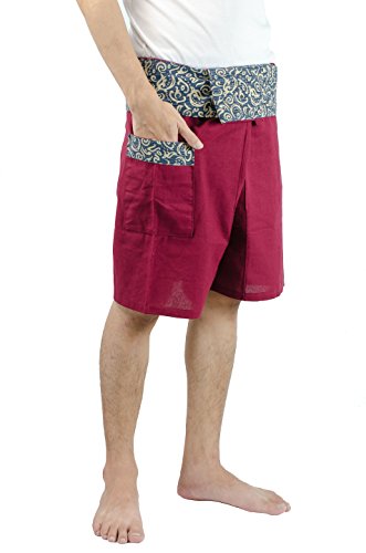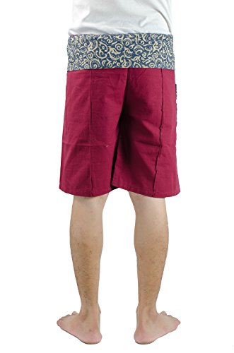 Artiwa 2 Tones Plus Size Men Women Fisherman Yoga Shorts with Pockets Maroon Red