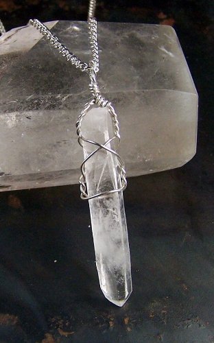 Large Silver Wire Wrapped Natural Quartz Crystal Point