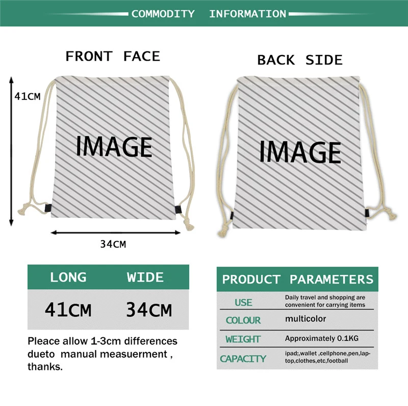 Pattern type:fashion 3d pattern women drawstring bags backpacks
