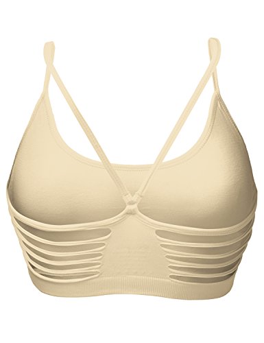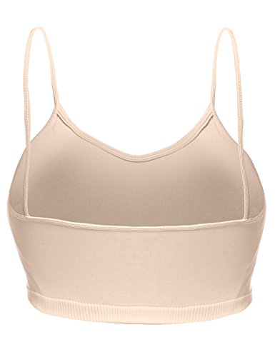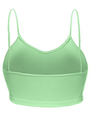 | Luna Flower Women's Plain Stretch Seamless Spaghetti Strap Short Tank Bra Tops. |