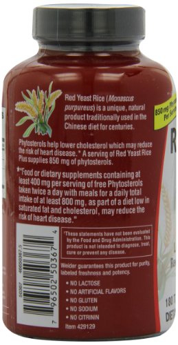Weider Red Yeast Rice Plus with Phytosterols 1200 mg per 2 Tablets - 180 Tablets