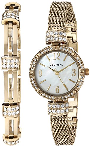 Armitron Women's 75/5548MPGPST Swarovski Crystal Accented Gold-Tone Mesh Watch and Bracelet Set