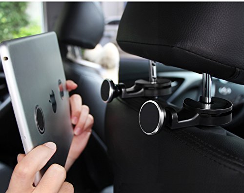 Tablet holder for car,headrest back seat ipad iphone Magnetic car mount for Cellphone iPad Tablet GPS,Car Hooks Storage Organizer for Bag Purse Cloth Grocery,Silver (L+R)
