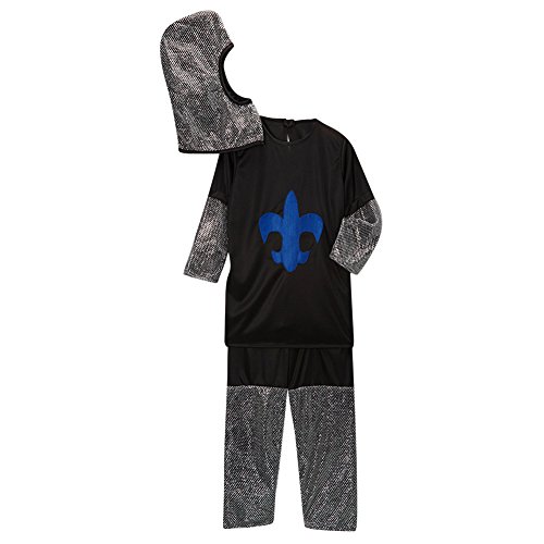 -. Brand : Making Believe -. Color : Black & Royal Blue -. Feature : Includes top, pants and helmet / Fun for a Halloween costume or everyday dress up and birthday parties / Perfect for play time, stage time or school dress up days / Polyester / Imported -. ProductGroup : Apparel -. ProductTypeName : CHILDRENS_COSTUME -. Title : Black & Royal Blue Chainmail Knight Dress-Up Set (Choose Size)