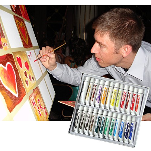 - • EVERYTHING YOU NEED – To produce a work of art, anywhere! This professional art kit offers a comprehensive color palette that comprises of 24 shades, in 12ml (0.4fl oz) tubes – Allowing for endless painting possibilities – Suitable for professional artists or students children and beginners. With such easy-to-carry tubes, why not head outdoors and paint en plein air?!