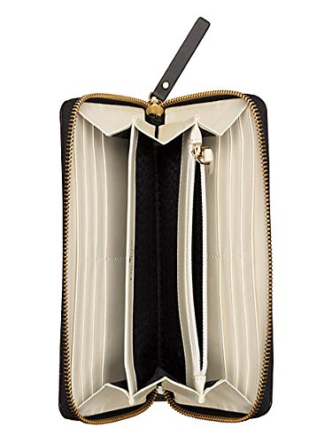 -. Feature : saffiano textured grainy vinyl with smooth leather trim / zip around continental wallet / 12 credit card slots, 3 billfolds, and zipper change pocket; exterior slide pocket / 3.9"h x 7.6"w x 0.8"d / capital kate jacquard lining