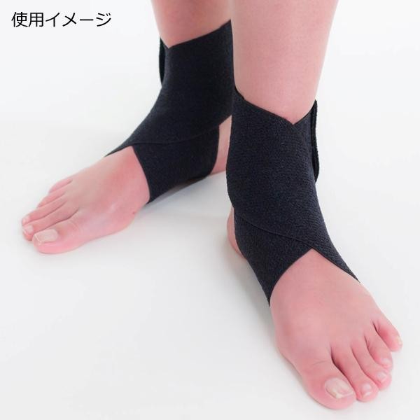 テーピングの巻き方が分からない方でもテーピング(フィギュアエイト)の要領で簡単装着。足首をしっかりと固定することができます。素足でも靴下の上からでも装着可能、いつでもどこでも取り外し出来ます。バンド外側が全面、面ファスナー(メス)になっているため自由な位置で装着できます。 |