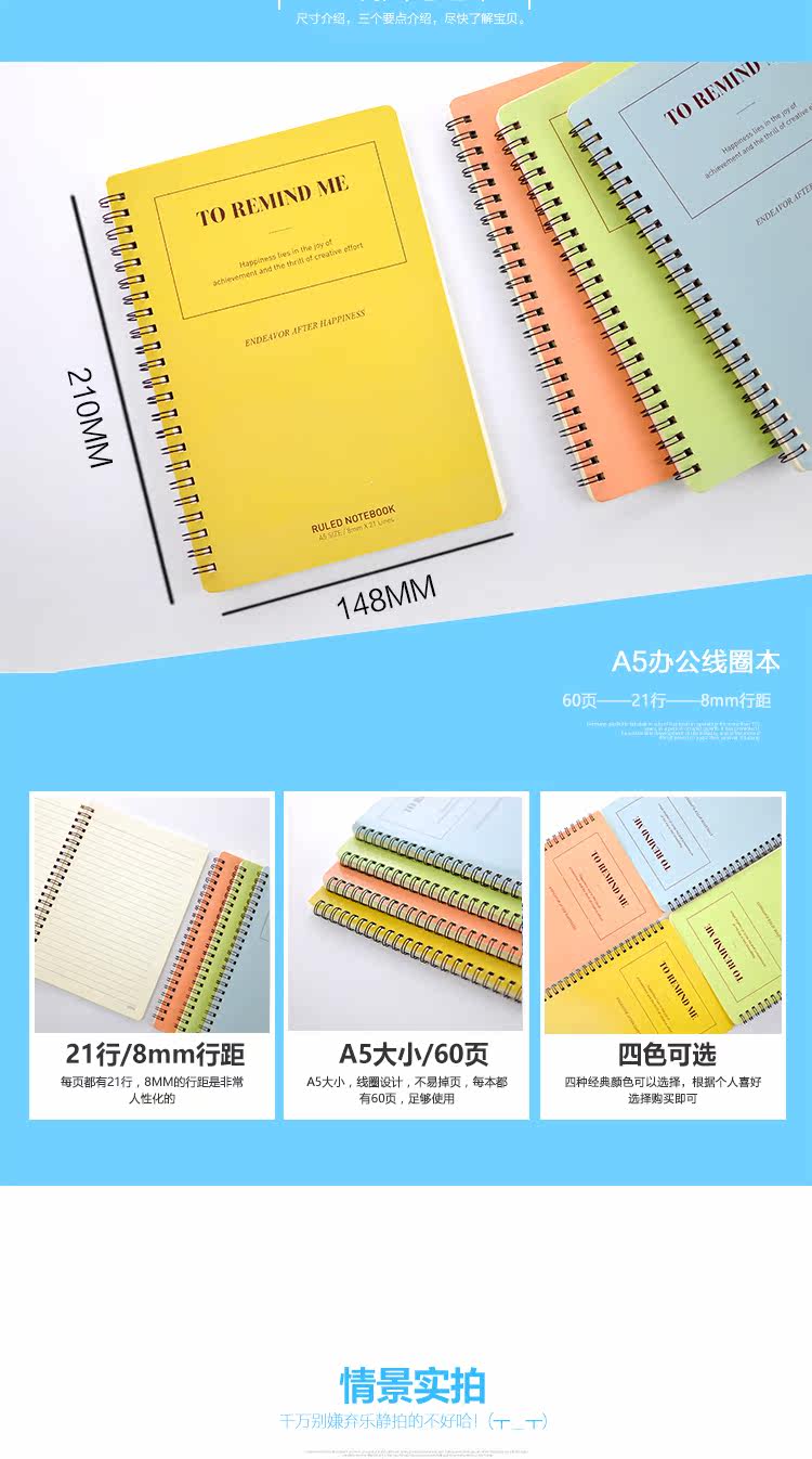 A5线圈笔记本软面抄螺旋本60页优质本子办公用品记事本日记本