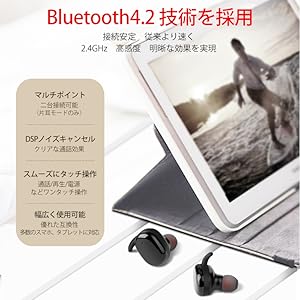 機能:通話、2台設備同時ペアリング、音楽鑑賞、ノイズキャンセル