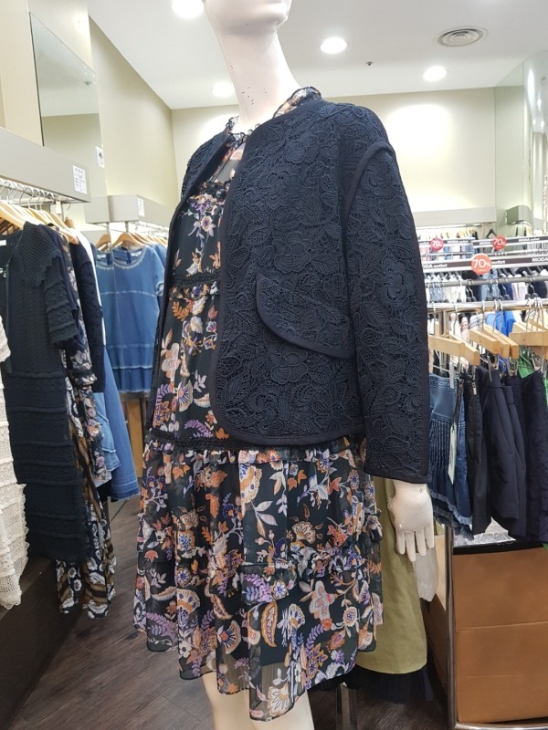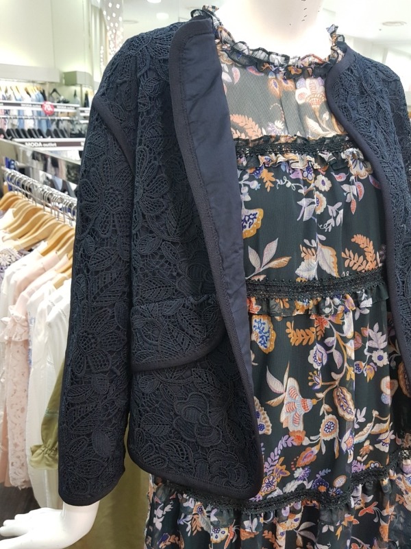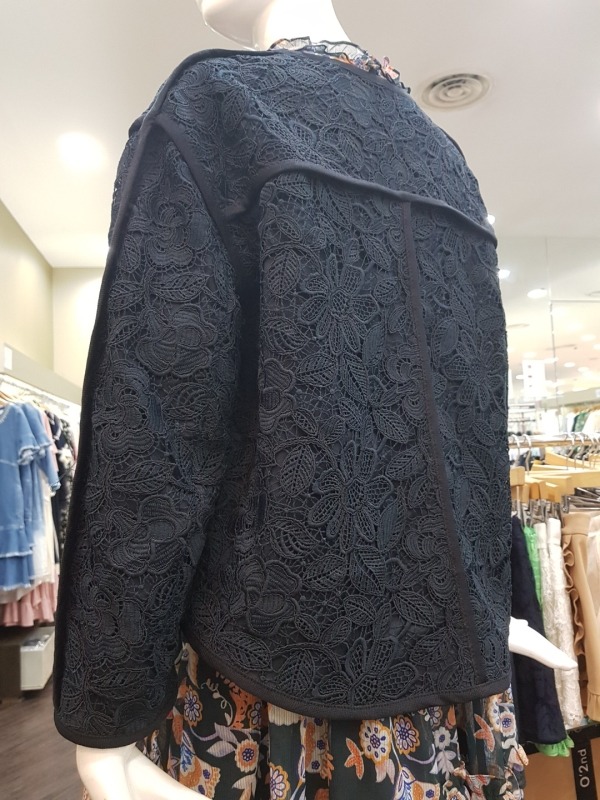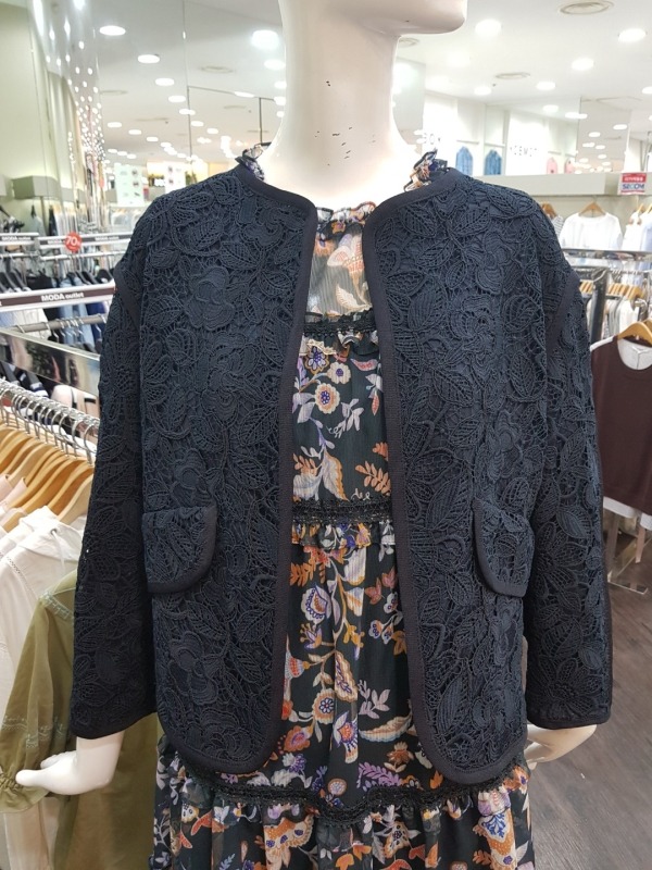 여밈이 없는 스타일의 자켓으로 전체적으로 수가 들어가 있어 고급스러움을 더해줍니다.소매를 살짝 접어 걷어올려 연출하시면 더 이쁘게 착용이 가능합니다.