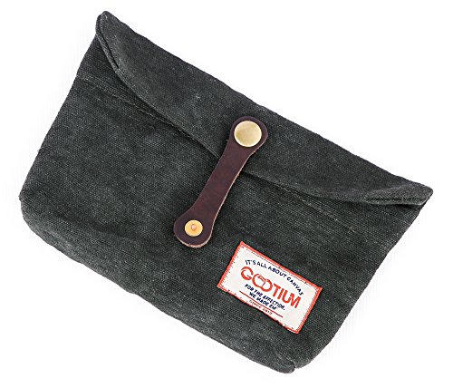Materials: 55% Cotton, 45% Linen; Genuine leather trim Dimension: Length 5.7", Width 1"(bottom), Height: 3.8" approximately Weight: 0.14 Pound Main compartment and slot pockets inside Gootium branding to front ???KINDLY REMINDER: