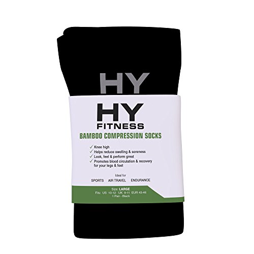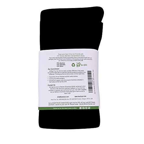 Knee high to help REDUCE SWELLING & SORENESS from your feet to the top of your calves. Treat yourself to comfort and quick recovery by using HY compression socks. HY Compression Socks also make big steps towards sustainability thanks to the long life of the product, planet and animal friendly bamboo material and the minimal, recyclable packaging. Good for You and the Planet.