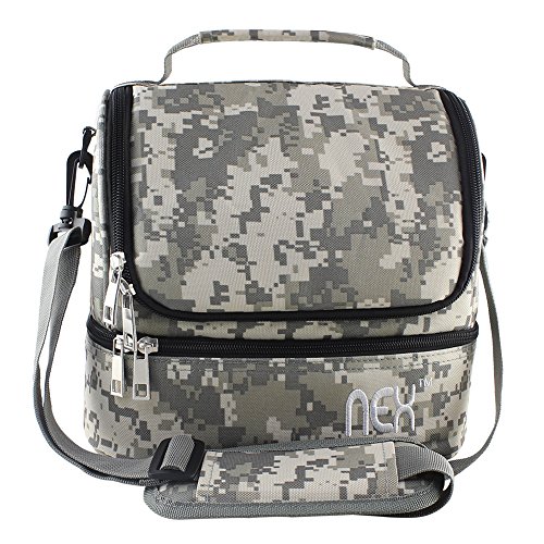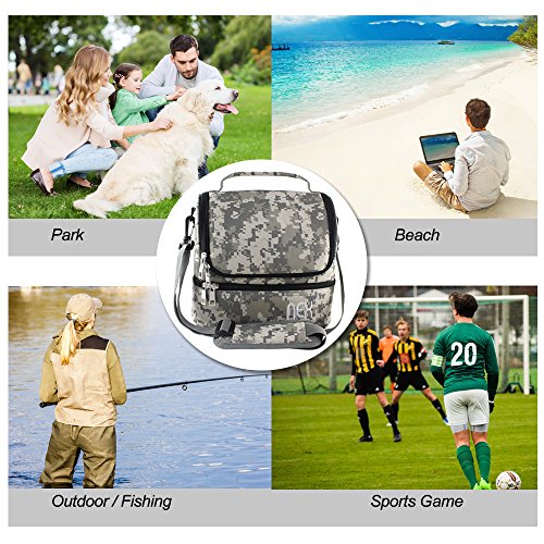 Nex Lunch Bag Double Cooler Carry Bag Insulated Tote Large Capacity with Adjustable Shoulder Strap and Zip Closure Travel Lunch Tote(Camo)