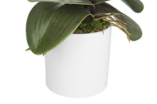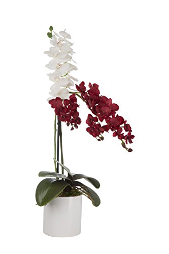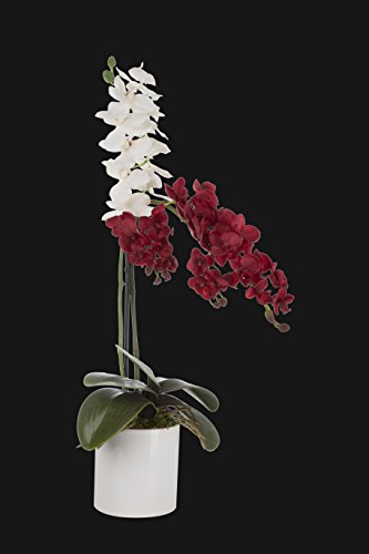 SilkenBloom Artificial Crimson Red and Angel White Silk Orchid Floral Arrangement in Modern Ceramic Pot