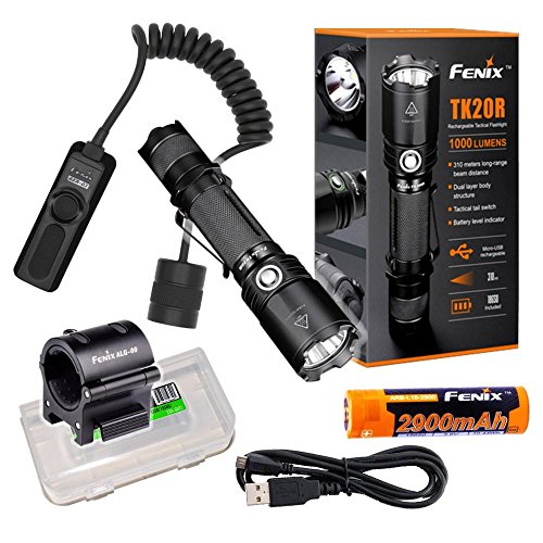 Tactical bundle: FENIX TK20R 1000 Lumen USB Rechargeable Cree LED tactical Flashlight with, rechargeable battery, ALG 00 mount, AER-03 pressure switch and EdisonBright BBX3 battery carry case bundle