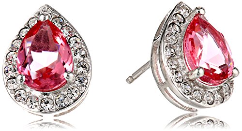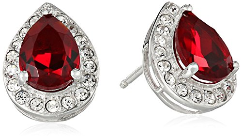 Sterling Silver Swarovski Siam Color and Clear Crystal Pear Stud Earrings