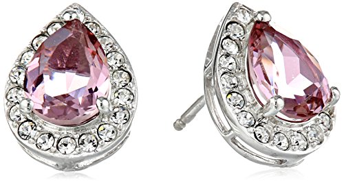 Sterling Silver Swarovski Rose Crystal and Clear Crystal Pear Stud Earrings