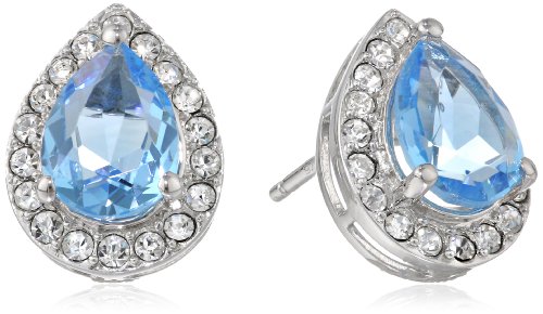 Sterling Silver Swarovski Denim Blue and Clear Crystal Pear Stud Earrings