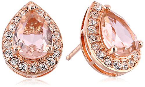 Sterling Silver with Pink Gold Plated Swarovski Elements Vintage Rose Crystal and Clear Crystal Pear Shape Studs
