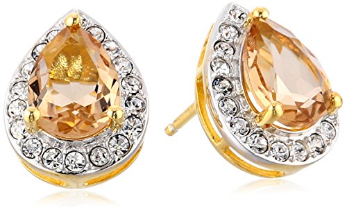 Sterling Silver with Gold Plated Swarovski Elements Light Colorado Topaz Crystal and Clear Crystal Pear Shape Studs
