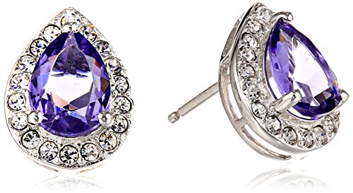 Sterling Silver Swarovski Tanzanite Color and Clear Crystal Pear Stud Earrings