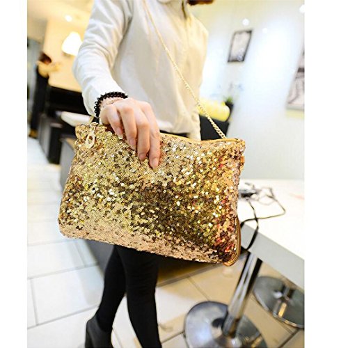 Size: 11 X 7 in (L*H)£»Zipper closurePaillette design, simple and fashion,best for party and weddingPackage: 1 X evening bag with chain;Due to the different displays of the computers, the color of the real item may be slightly different from the picture shown.Dear Customers, thanks for your business, if you're satisfied with our items, please give us a positive feedback. We will appreciate you very much.If for any reasons that you are not satisfied with our items or service, please feel free to contact us before you are leaving a negative feedback. We will try our best to solve the problem and offer the best service to you.The best way to contact us is through Amazon messages, we check our message regularly. If you have any question, just ask.Feature