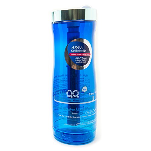 BlueQQ FDA Certified Premium Alkaline Mineral Water Ionizer Water Bottle, Cartridge System Providing Minerals Such as Calcium, Magnesium & Zinc