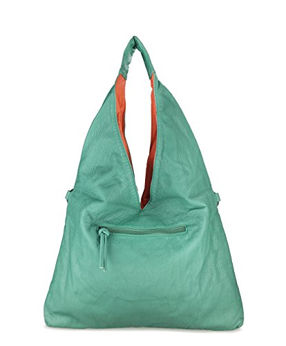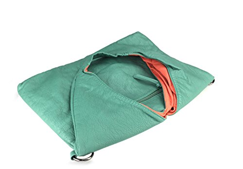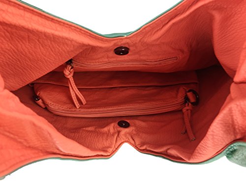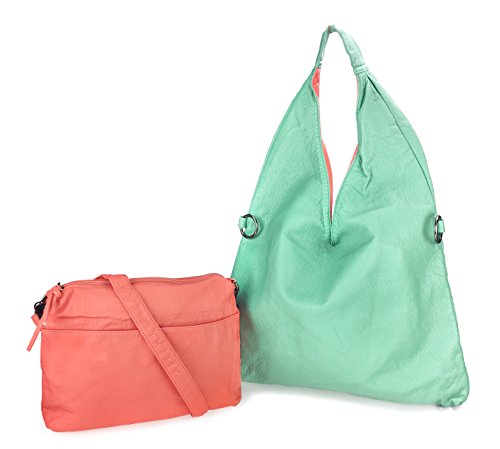 Hobo Shoulder Handbag 2 in 1 Color Block Washed Soft Leather Women Tote