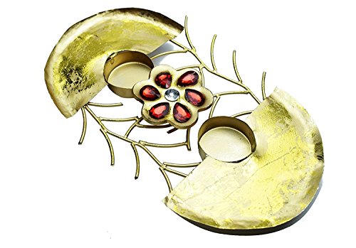 Beautiful Tea Light Candle Holder , Made of Metal with random Foil Paint finish to enhance the Decoration of your home.. (Size: L- 24 cm , W-13 cm, H-2 cm)