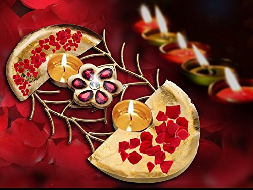 Diwali Gift / Diwali Decorations Beautiful designer metal Dia with Red stones in Random Foil Paint. Deepawali Diya / Oil Lamp / Tea Light Candle Holder Stand Christmas Decoration. Diwali Candles