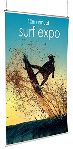 48" wide banner hanging kit is excellent for posters, signs, and other advertisements. Choose from black or silver aluminum finish.^Top and bottom rail are included and can hold inserts measuring 0.5mm in thickness or less^Hanging hardware not included^Displays2go SKU#: ELBNRL48S